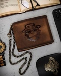 Duży skórzany portfel męski jasnobrązowy z buldogiem — Always Wild N4-CHM-DOG-2