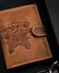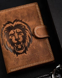 Duży skórzany portfel męski ciemnobrązowy ze znakiem zodiaku lew — Peterson N4-EBS
