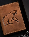 Duży skórzany portfel męski brązowy ze znakiem zodiaku byk — Peterson N4-EBS