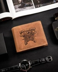 Skórzany portfel męski poziomy brązowy ze znakiem zodiaku strzelec — Peterson N992-EBS