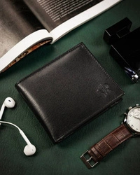 Skórzany klasyczny portfel męski czarny poziomy - Rovicky N992-GOAN