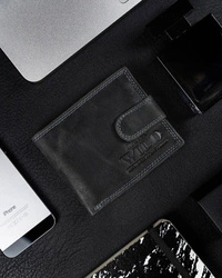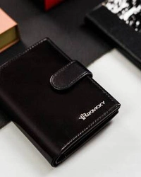 Elegancki skórzany portfel męski z zapięciem czarny - Rovicky PC-106L-BAR