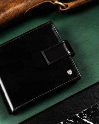 Ekskluzywny skórzany portfel męski z zapięciem czarny - Barberini's LM-1640-1