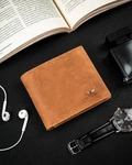 Skórzany portfel męski poziomy nubukowy camel — Peterson N4L-CHM-M