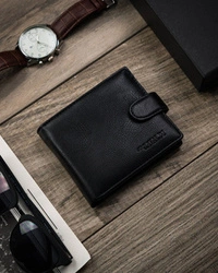 Skórzany portfel męski czarny z zapięciem - Beltimore I46