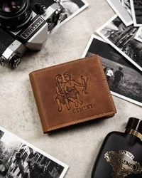 Skórzany portfel męski brązowy poziomy ze znakiem zodiaku panna — Peterson N992-EBS