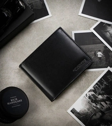 Mały skórzany portfel męski czarny na karty — Cavaldi M1077-PU