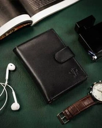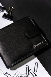 Skórzany portfel męski na zatrzask czarny - Rovicky N4L-GOAN
