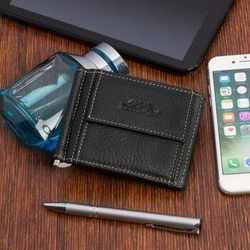 Skórzany portfel męski czarny z zapięciem RFID - Beltimore K45