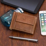 Skórzany mały portfel męski z wsuwką na banknoty brązowy RFiD - Beltimore L47