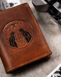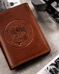 Duży skórzany portfel męski brązowy ze znakiem zodiaku ryby — Peterson N4-EBS