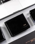 Skórzany portfel męski czarny z kontrastowym obszyciem — Peterson 302.03-5545 BL