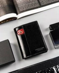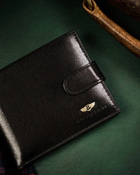 Skórzany portfel męski z zapięciem czarny RFID - Beltimore P96