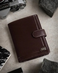 Skórzany portfel męski zapinany na zatrzask brązowy - Always Wild N4L-CHM-DOG-1