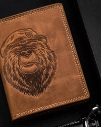 Duży skórzany portfel męski brązowy ze znakiem zodiaku wodnik — Peterson N4-EBS