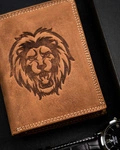 Duży skórzany portfel męski ciemnobrązowy ze znakiem zodiaku lew — Peterson N4-EBS