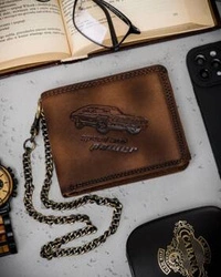Duży skórzany portfel męski z zapięciem brązowy wzór czaszka2 - Always Wild N4L-CHM-BOU