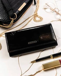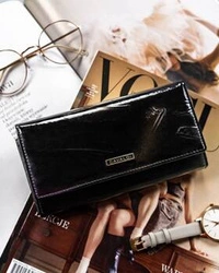 Elegancki portfel damski ze skóry naturalnej i eko czarny - 4U Cavaldi PN29-YM-BL
