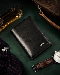 Mały skórzany portfel męski czarny na karty — Cavaldi M1077-PU