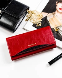 Skórzany portfel damski z lakierowanej skóry naturalnej na bigiel Peterson PTN MC-445-2114 R-B