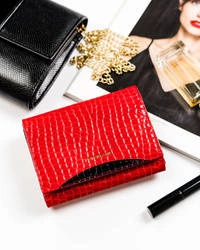 Skórzany portfel damski z motywem skóry krokodyla czerwony podłóżmy Peterson PTN CR-411-RED