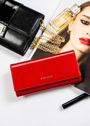Skórzany damski portfel lakierowany ze złotymi okuciami czerwony - Peterson 72401-SAF