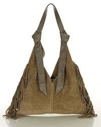 Torebka damska beżowa zamszowa z frędzlami worek skórzany MARCO MAZZINI s290b