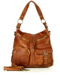 Torebka damska skórzana włoska worek camel brąz - Barberini's 994-12