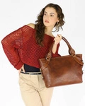 Skórzana torebka damska miejska vintage brązowa - MARCO MAZZINI v154f