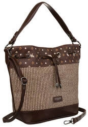Stylowa brązowa torebka damska worek z ozdobnym panelem - David Jones 6875-2