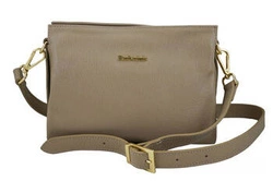 Skórzana torebka damska listonoszka miejska ciemnobeżowa - Barberini's 989-9