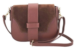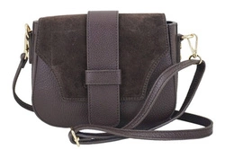 Skórzana listonoszka damska na ramię z zamszową klapą brązowa - Barberini's 969-6