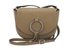 Skórzana listonoszka na ramię z klapką ciemnobeżowa - Barberini's 641-9