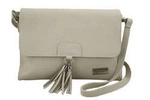 Skórzana listonoszka na ramię z frędzelkiem jasnobeżowa - Barberini's 925-10