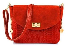 Skórzana listonoszka kuferek zamszowy czerwony Beltimore S80