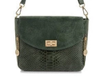 Skórzana listonoszka na ramię zamszowa skóra węża zielona Vera Pelle T96
