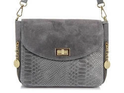 Skórzana listonoszka na ramię zamszowa skóra węża szara Vera Pelle T96
