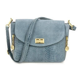 Skórzana listonoszka damska na ramię niebieska skóra węża Vera Pelle T96