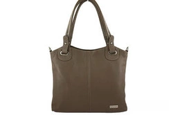 Skórzana torebka damska na ramię ciemnobeżowa - Barberini's 982-9