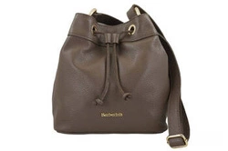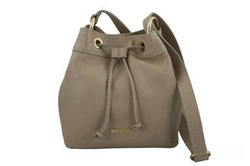 Skórzana mała torebka damska worek ciemnobeżowa - Barberini's 975-9
