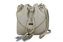 Skórzana mała torebka damska worek z frędzlami jasnobeżowa - 977-10 Barberini's