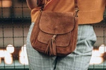 Skórzana torebka damska na ramię worek zamszowy koniak - Vera Pelle U35