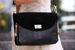 Skórzana listonoszka damska skóra węża czarna Vera Pelle T96
