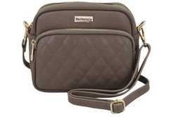 Skórzana torebka damska listonoszka pikowana ciemnobeżowa - Barberini's 993-9