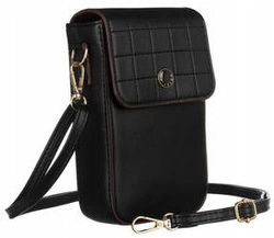 Mała listonoszka damska czarna z pikowaną klapką ze skóry ekologicznej — Peterson M-15
