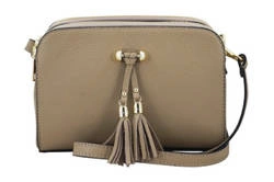 Skórzana listonoszka damska na ramię z frędzlem croco ciemnobeżowa - Barberini's 956-9