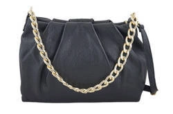 Skórzana torebka na ramię marszczona z łańcuszkiem czarna - Barberini's 948-1