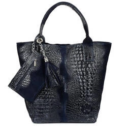 Skórzana damska shopperka granatowa zamszowa croco L94
