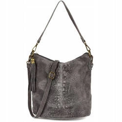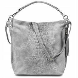 Skórzana zamszowa torebka damska szara skóra croco Beltimore W13