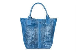 Skórzana damska shopperka niebieska zamszowa croco L94